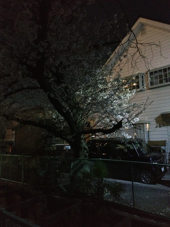 ライトに照らされた桜はなんか幻想的な雰囲気がします。