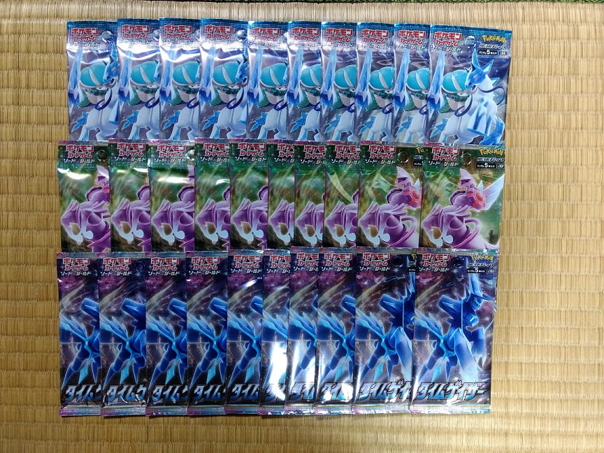 絶賛再販中のポケカ3種盛り合わせ、各10パックずつ。