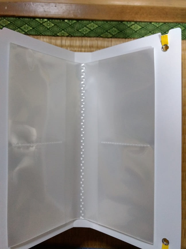 中はこんな感じで片面2ポケットとなっていて、カードは最大80枚入るようになっています。