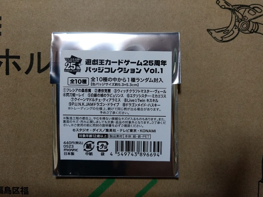 遊戯王カードゲーム25周年バッジコレクション(全10種)。