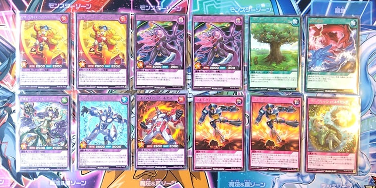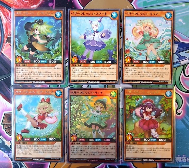 今弾には新テーマの「ベリーフレッシュ」、前弾で登場した「ダークマター」やデッキも発売された「HERO」、それと久しぶりの「幻竜族」の強化カードなどが収録されています。