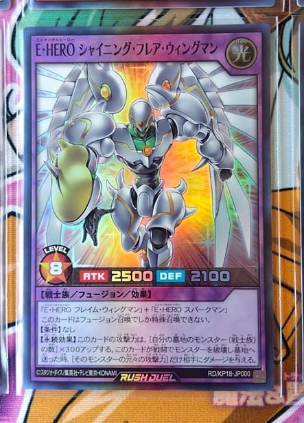 ちなみに「E・HERO シャイニング・フレア・ウィングマン」はオーバーラッシュレアでのみ収録されているわけではなく、スーパーレアでも収録されており入手しやすくなっています。