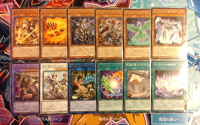 注目テーマとしては「ティスティナ」と「灰滅(かいめつ)」の2つ、そして城之内君が愛用していた「炎の剣士」の強化カードも多数収録されているようです。