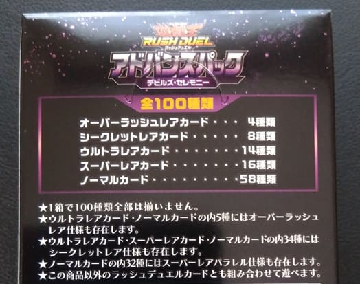 今回開封したパックはアドバンスパックというもので、高みを目指すデュエリスト向けに、より実践的なカードが収録されたスペシャルパックになります。