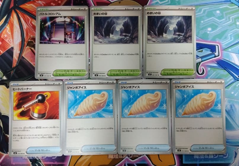 - サポート:5枚、グッズ:4枚、ポケモンのどうぐ:2枚、スタジアム:3枚
